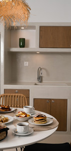 The amazing totally private and exclusive location of Mardanza Mavrathiro, Mardanza Mezzo and Mardanza Mandilaria Villa, is the unique advantage of these luxurious apartments for 4. The villas offer a 210 degrees view of the eastern Aegean Sea, Anafi, Astypalaia, Amorgos and Naxos islands. The two double bedrooms offer exclusivity for the 4 guests, in a luxurious, yet comfortable atmosphere. The exceptional beds and the en-suite open plan bathrooms add up to the comfort needed, while on vacation. The cave style master bedroom (king size bed) is spacious with the comfort of a walk-in wardrobe, while the open windows offer sea view, from bed! The "pool" bedroom, offers a spacious open plan bathroom, with a shower, while the pool is just at your doorstep!!!. Mavrathiro Villa offers, in addition, a bathtub for relaxing moments. The pool, with the embeded jacuzzi bench, offers you the relaxing moments you need while on vacation. On the veranda you have the choice of chilling in the sunbeds, relaxing in large size floor pillows or just have the pleasure of a prvate dinner and wine tasting at the table and the comfortable outdoor chairs!